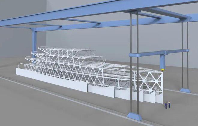 为了建造这艘超级游艇,工程师们将利用LFAM 机器人3D打印来创建一个网状框架——将船体和上层建筑融为一体。其结果是一种非常坚固和轻便的结构,与传统的施工方法相比,它可以使用更少的能源、材料、废物、空间和时间来生产。