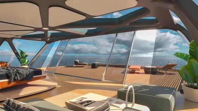 这艘充满未来感的游艇构思于希腊Koufonissi岛的海滩上,“我的灵感来自于创造一艘尽可能靠近大海和自然的游艇,由漂浮在吃水线上方的云层构成,”这种对“隐形”的渴望驱使Forakis开发了一艘真正的零排放游艇,“在设计和环境影响方面都是隐形的”。