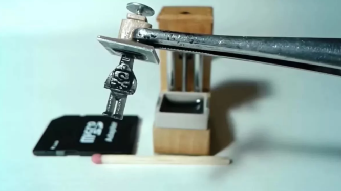 YouTuber @My N Mi 展示了这款微型 3D 打印机的实际工作过程,它可以在短短几分钟内完成一个微型、半透明的绿色机器人模型。